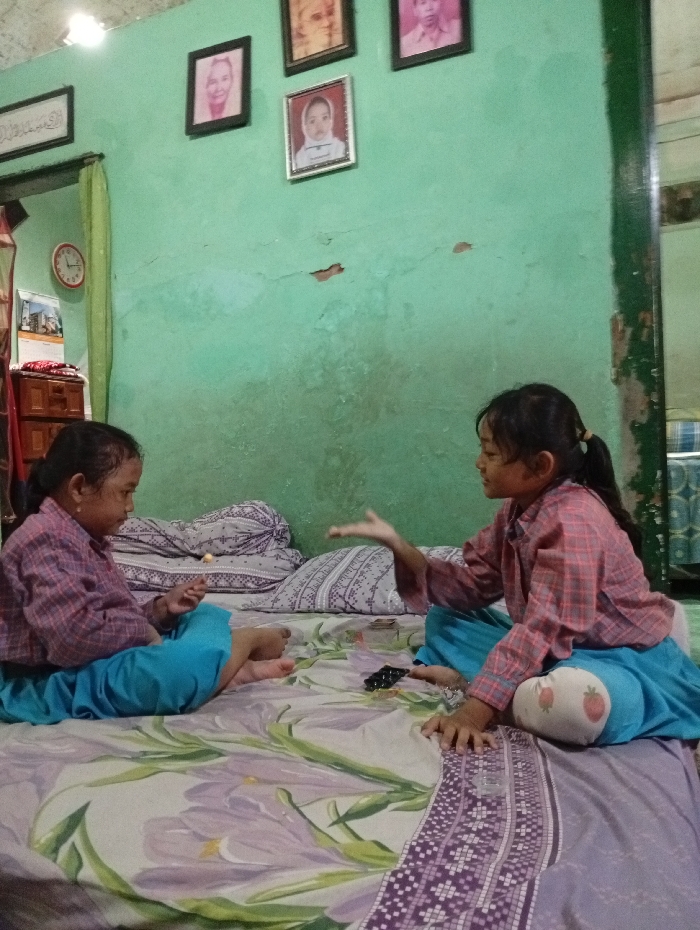 - "Two children are seated facing each other on a bed within a room in Kecamatan Pati, Indonesia" by FM-OkgR33, licensed under CC BY 4.0