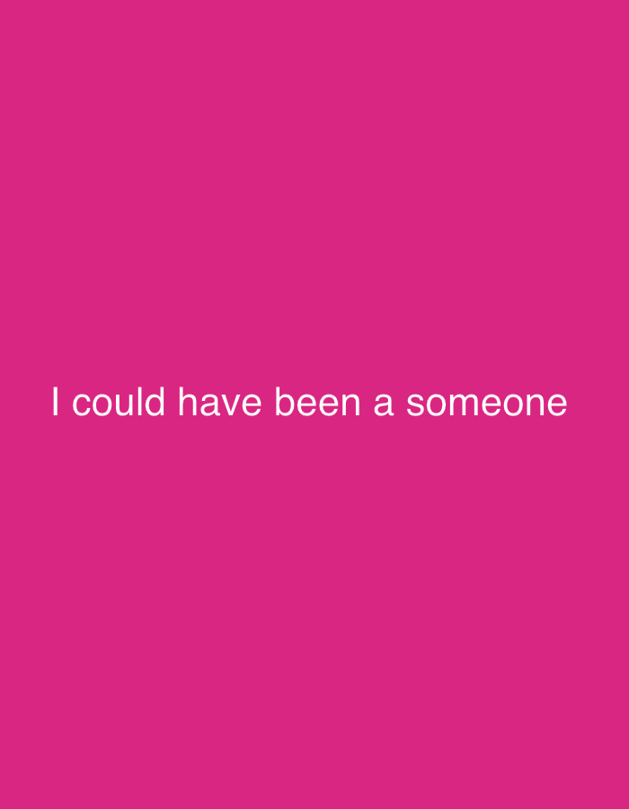 The image is a magenta background with the white text "I could have been a someone" centered horizontally and positioned in the lower middle of the frame