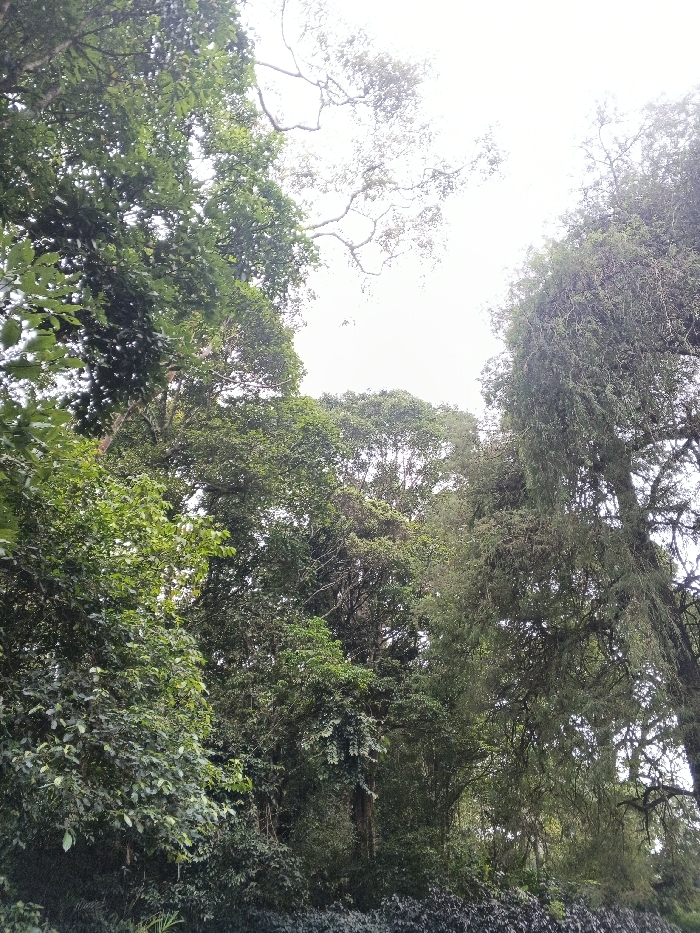 - "The image displays a dense, verdant forest canopy, viewed from a low perspective looking upwards towards a bright, overcast sky" by FM-4Sqr83, licensed under CC BY 4.0