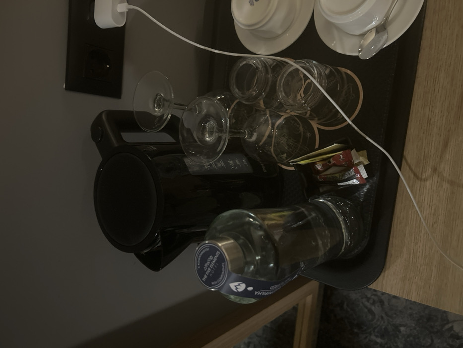 - "The scene depicts a hospitality amenities setup on a dark, rectangular tray, situated on a light-colored wooden surface" by FM-R39aY2, licensed under CC BY 4.0
