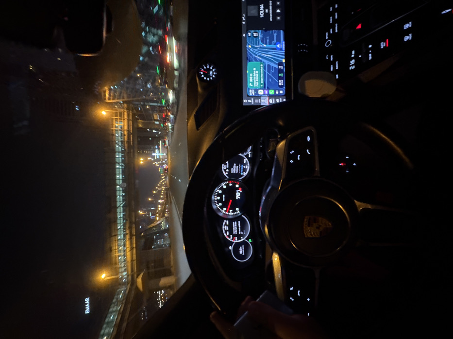 - "Captured from inside a Porsche at night, the scene overlooks a brightly lit cityscape with an "EMAAR" logo visible" by FM-8gHP13, licensed under CC BY 4.0