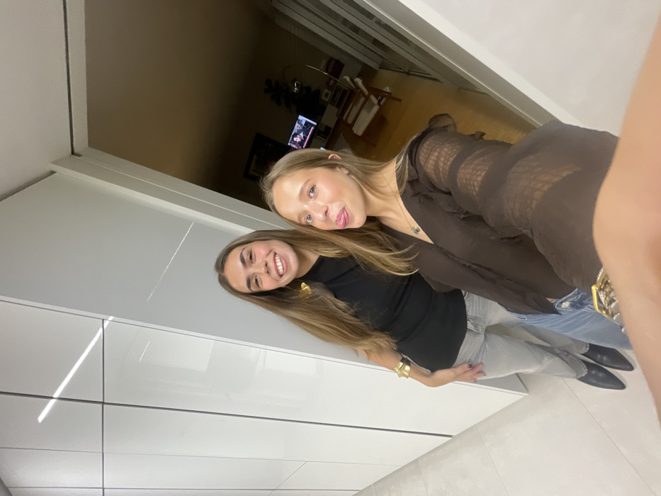 The image displays two young adult females posing for a photograph indoors in Matosinhos, Portugal