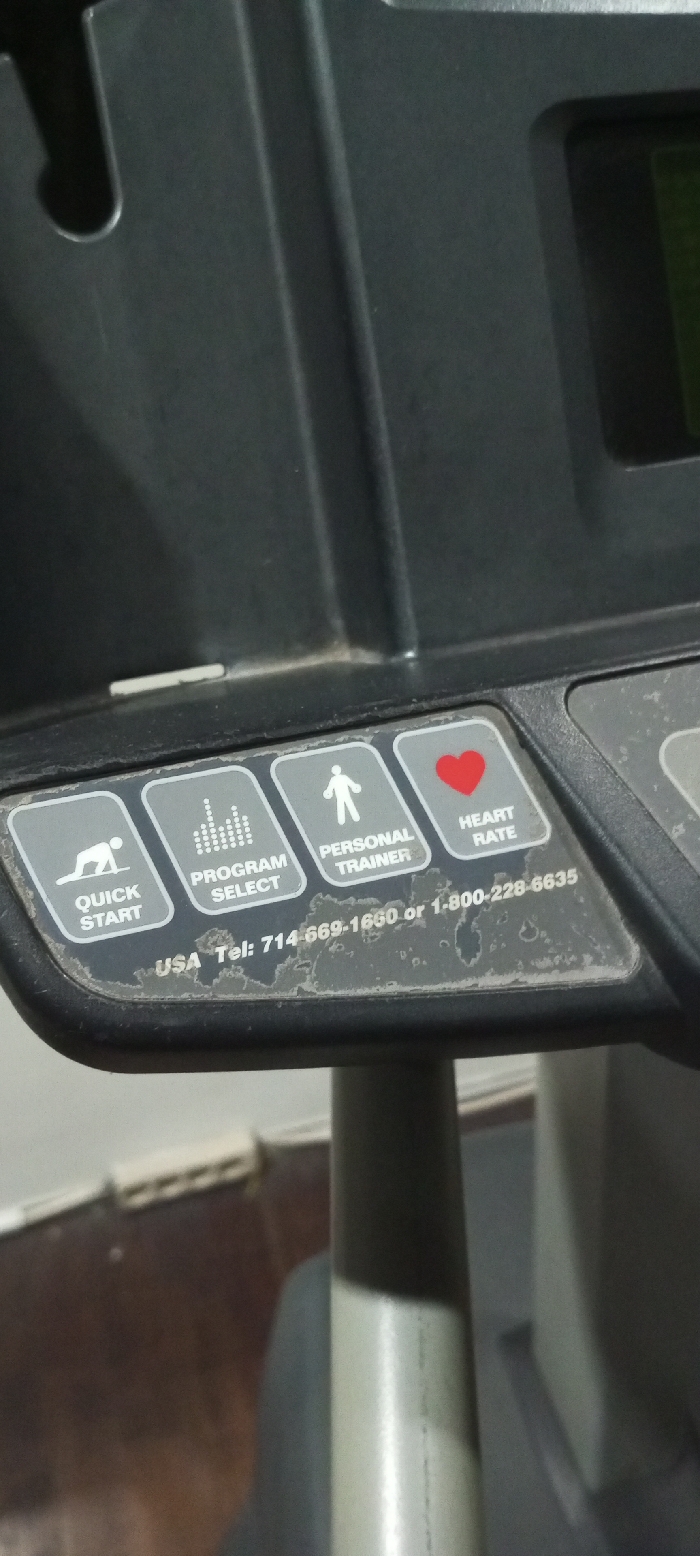 - "The image provides a close-up, slightly upward-angled view of the worn dark gray plastic control panel of an exercise machine" by FM-wbK863, licensed under CC BY 4.0