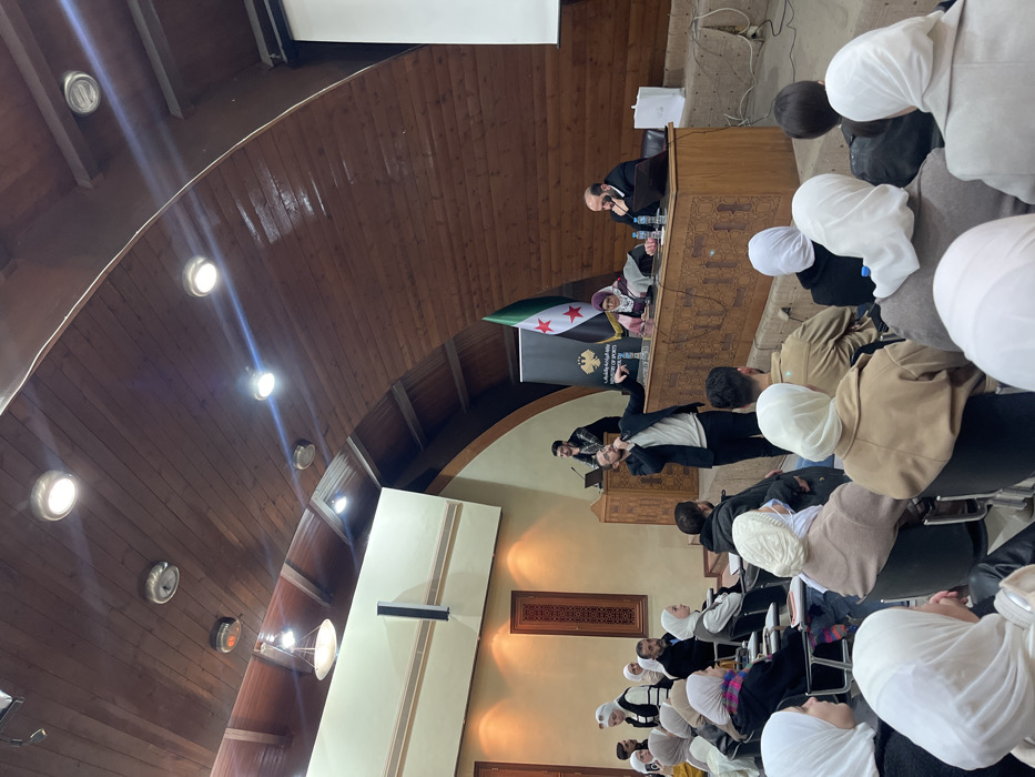 - "The image depicts an indoor lecture or conference event occurring within a hall in Al-Qanawat Municipality, Syria" by FM-WnN6r1, licensed under CC BY 4.0
