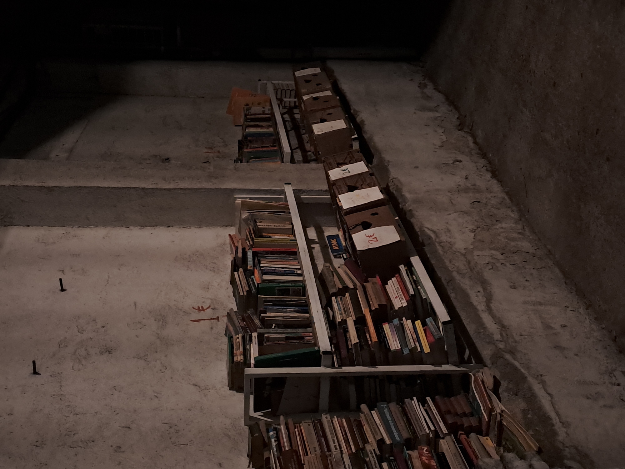 - "This image depicts a dimly lit, utilitarian interior space, identified as a location in Sofia, Bulgaria, likely a basement or an informal bookstore" by FM-WTdz72, licensed under CC BY 4.0