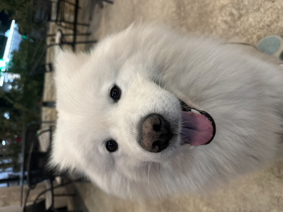 - "A white Samoyed dog is depicted in a close-up, head-on portrait, centered within the frame" by FM-CDHqs1, licensed under CC BY 4.0