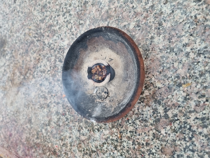 - "The scene depicts a circular, unglazed earthenware or terracotta incense burner situated on a speckled granite surface in Koyalaguttapalli, India" by FM-Qmj6l1, licensed under CC BY 4.0