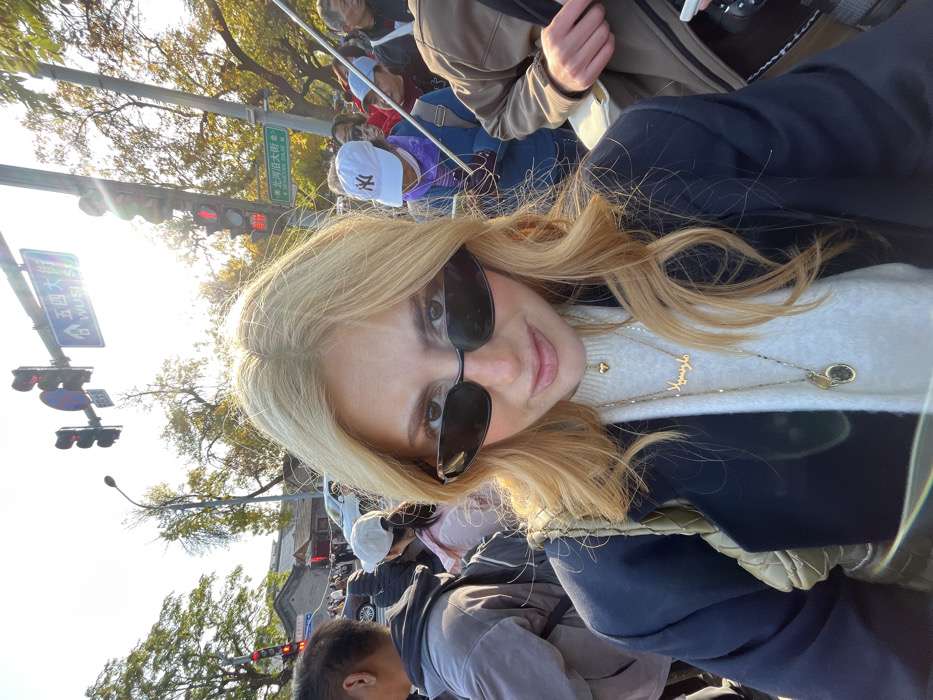 - "A blonde female, wearing dark rectangular sunglasses, a dark blue blazer over a white turtleneck sweater, and multiple gold necklaces including one with "مارينا" (Marina) in Arabic script, is captured in a close-up, chest-up shot, looking directly at the camera" by FM-VYYYD2, licensed under CC BY 4.0