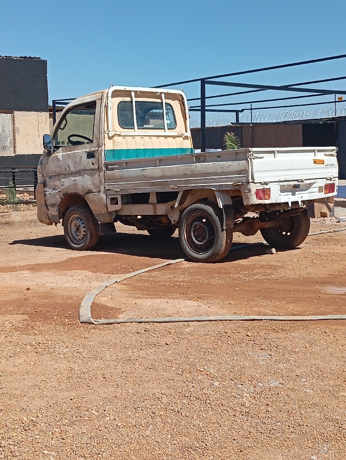 - "The scene depicts a heavily weathered, cream-colored Mitsubishi L300 series light pickup truck, featuring a teal stripe below the rear cab window, parked on a reddish-brown, gravelly dirt surface in Bar Gada, Nigeria" by FM-hF7Ke2, licensed under CC BY 4.0