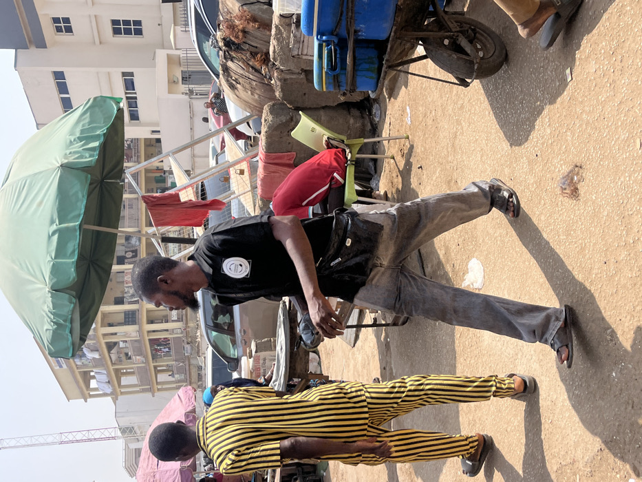 An outdoor scene in Abuja, Nigeria, depicts a bustling urban area under bright daylight