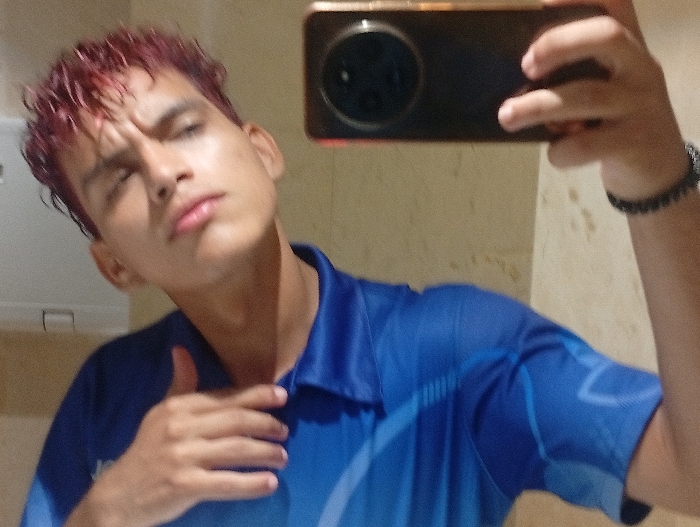 - "A young, fair-skinned person with short, reddish-brown hair takes a selfie in a bathroom" by FM-xUvng2, licensed under CC BY 4.0
