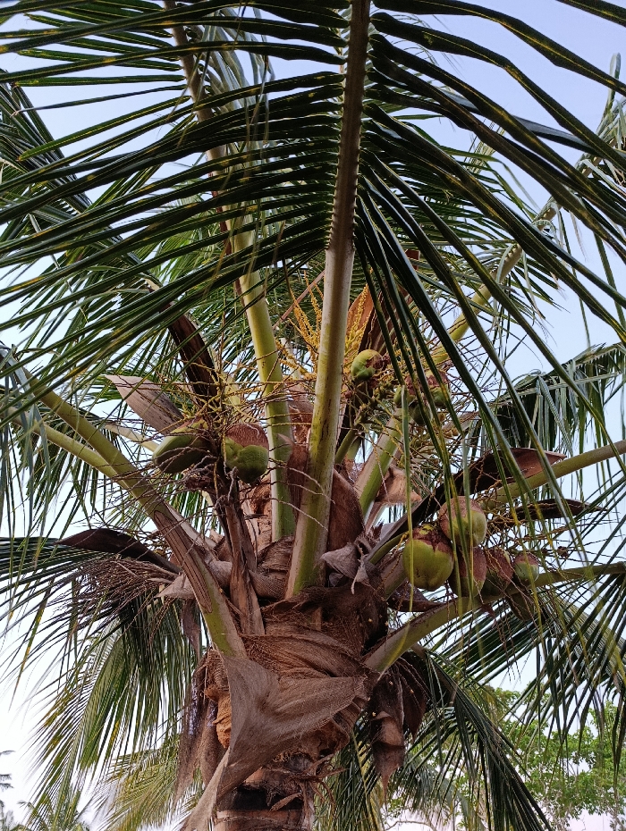 - "The image provides a detailed, low-angle perspective of the upper trunk and crown of a coconut palm tree, located in Vanga ward, Kenya" by FM-d4PGJ2, licensed under CC BY 4.0