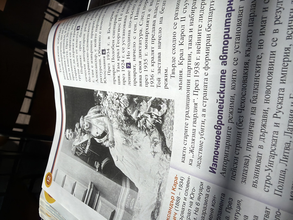 An open textbook, displaying page 12, rests on a flat, dark surface in an indoor setting within the city of Svilengrad, Bulgaria