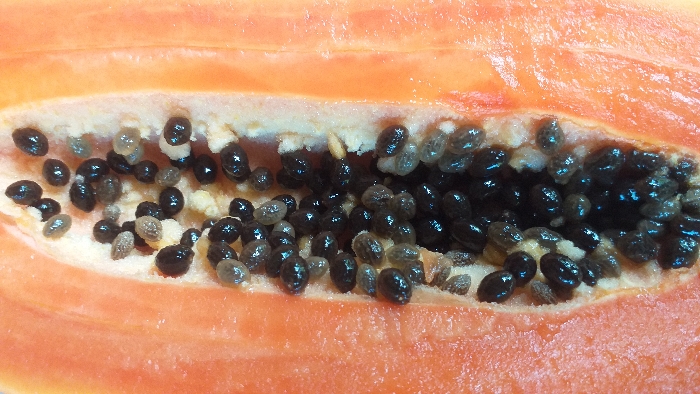 - "A close-up, high-angle image captures the interior of a longitudinally bisected papaya fruit, situated in Mns Alue, Indonesia" by FM-6oDkC2, licensed under CC BY 4.0
