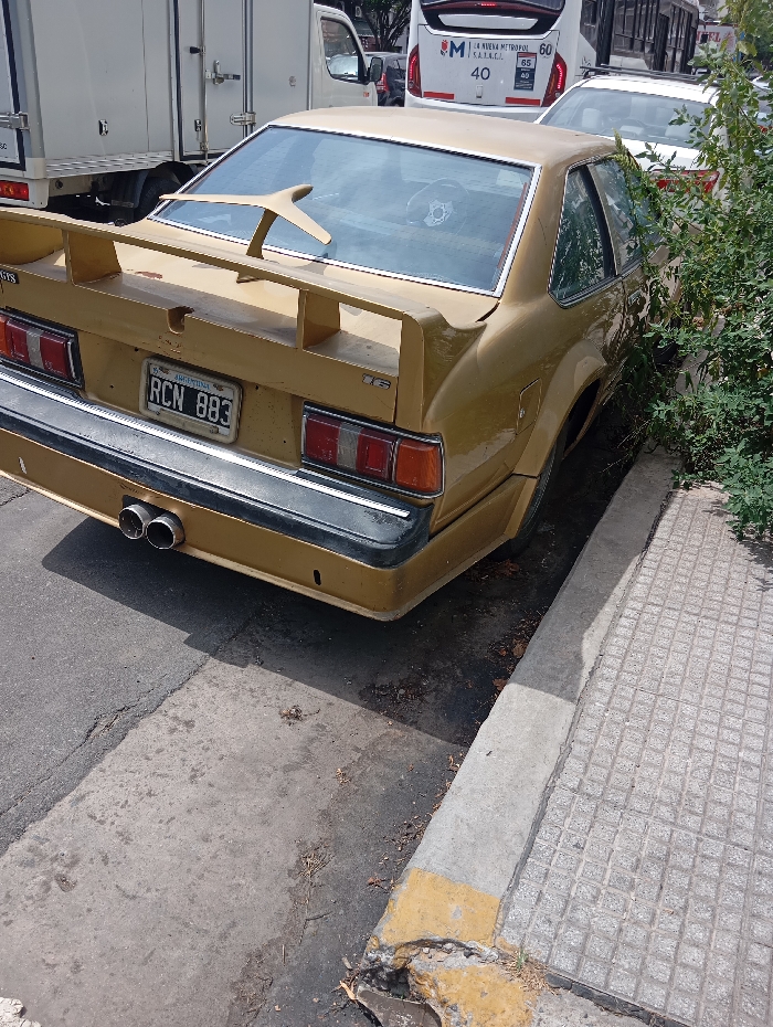 - "An overhead-angled photograph captures a gold-colored two-door coupe vehicle, identified by its Argentine license plate "RCN 883," parked curbside on a paved street in Buenos Aires, Argentina" by FM-Tz4zh1, licensed under CC BY 4.0