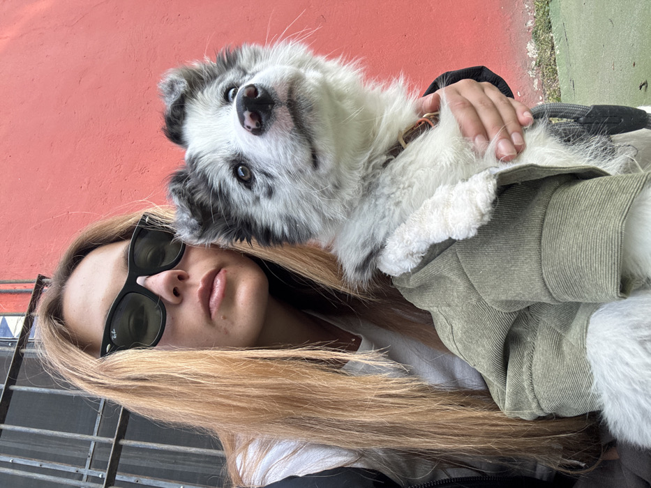 - "A woman with sunglasses and long blonde hair poses with a fluffy, black and white dog" by FM-BS4Ql2, licensed under CC BY 4.0