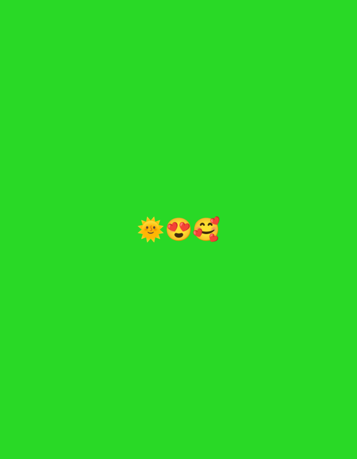 The image displays a solid, vibrant green background. Centered horizontally in the upper half of the frame are three emojis arranged in a linear sequence. From left to right, these include: a bright yellow sun with a smiling face, a yellow face with heart-shaped eyes and a slight smile, and a yellow face with closed smiling eyes, an open smile, and three small red hearts positioned near its head. No other subjects, objects, or actions are present. The environmental context for this scene is specified as the city of Los Robles, Venezuela.