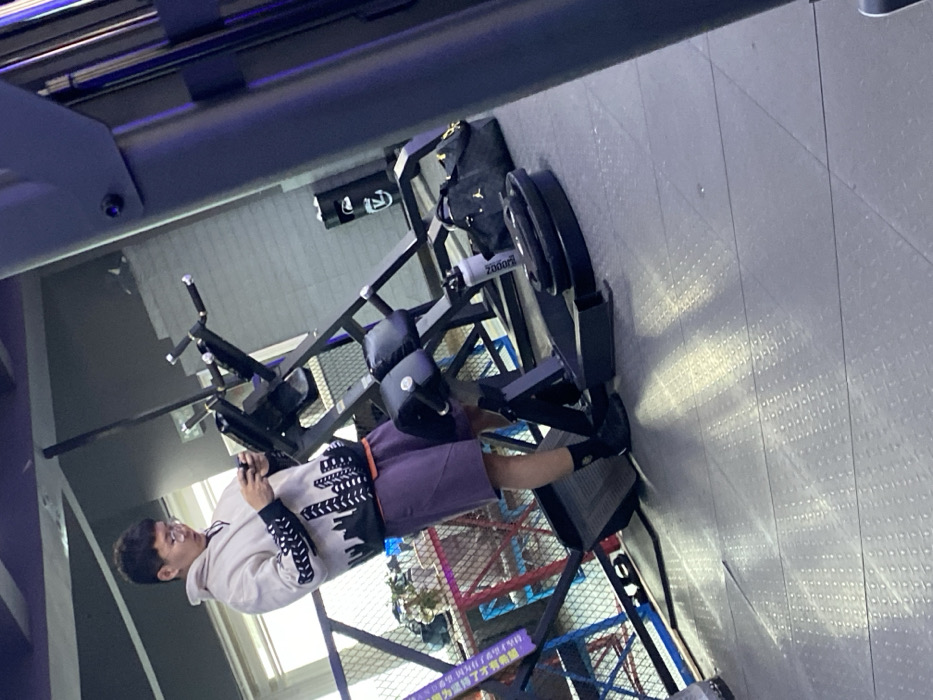 - "An indoor gym in Guta, China, features a male individual standing near a piece of black gym equipment designed for lower body exercises, such as hip thrusts, which includes padded supports and a footplate" by FM-7sf2h2, licensed under CC BY 4.0