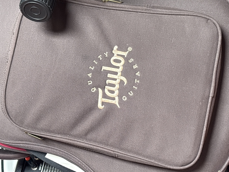 - "The image displays a close-up, top-down view of a dark brown fabric soft case or gig bag" by FM-dYjX22, licensed under CC BY 4.0