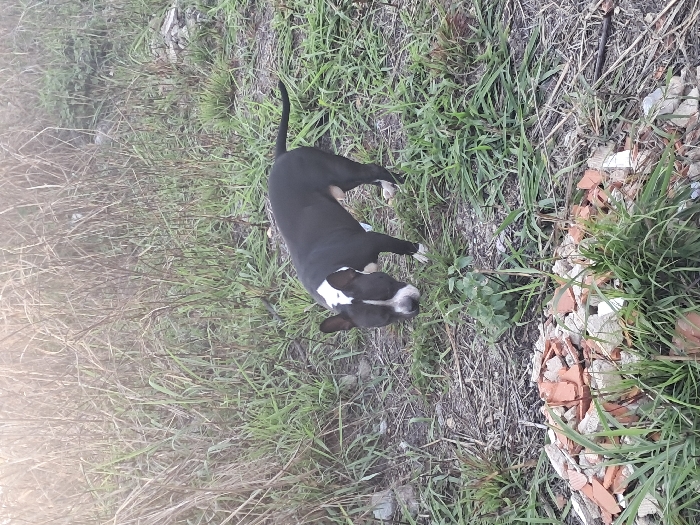 - "A black and white dog stands in a field of tall green and brown grass" by FM-kmeYo1, licensed under CC BY 4.0