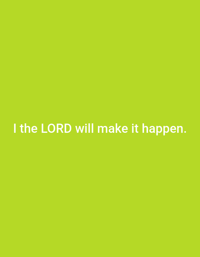 The image is a digital graphic featuring a uniform lime green background. White, sans-serif text is horizontally centered and positioned in the lower middle portion of the frame. The text reads: "I the LORD will make it happen." No people, objects, actions, interactions, or physical environment are depicted. Therefore, no specific location within the city of Barden Yana, Nigeria, or elsewhere, is identifiable from this image.