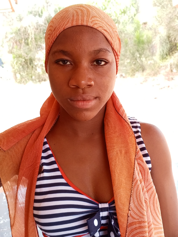 A young adult female is depicted in a full-frame, eye-level portrait photograph taken outdoors in Ankpa, Nigeria