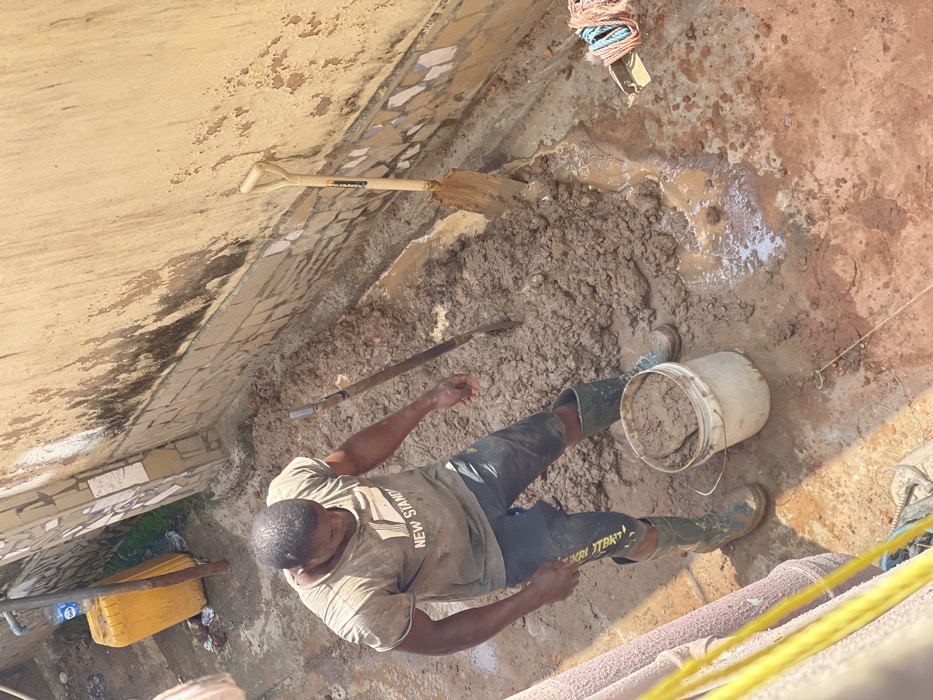 The image displays an outdoor work scene in Umunekwu, Nigeria