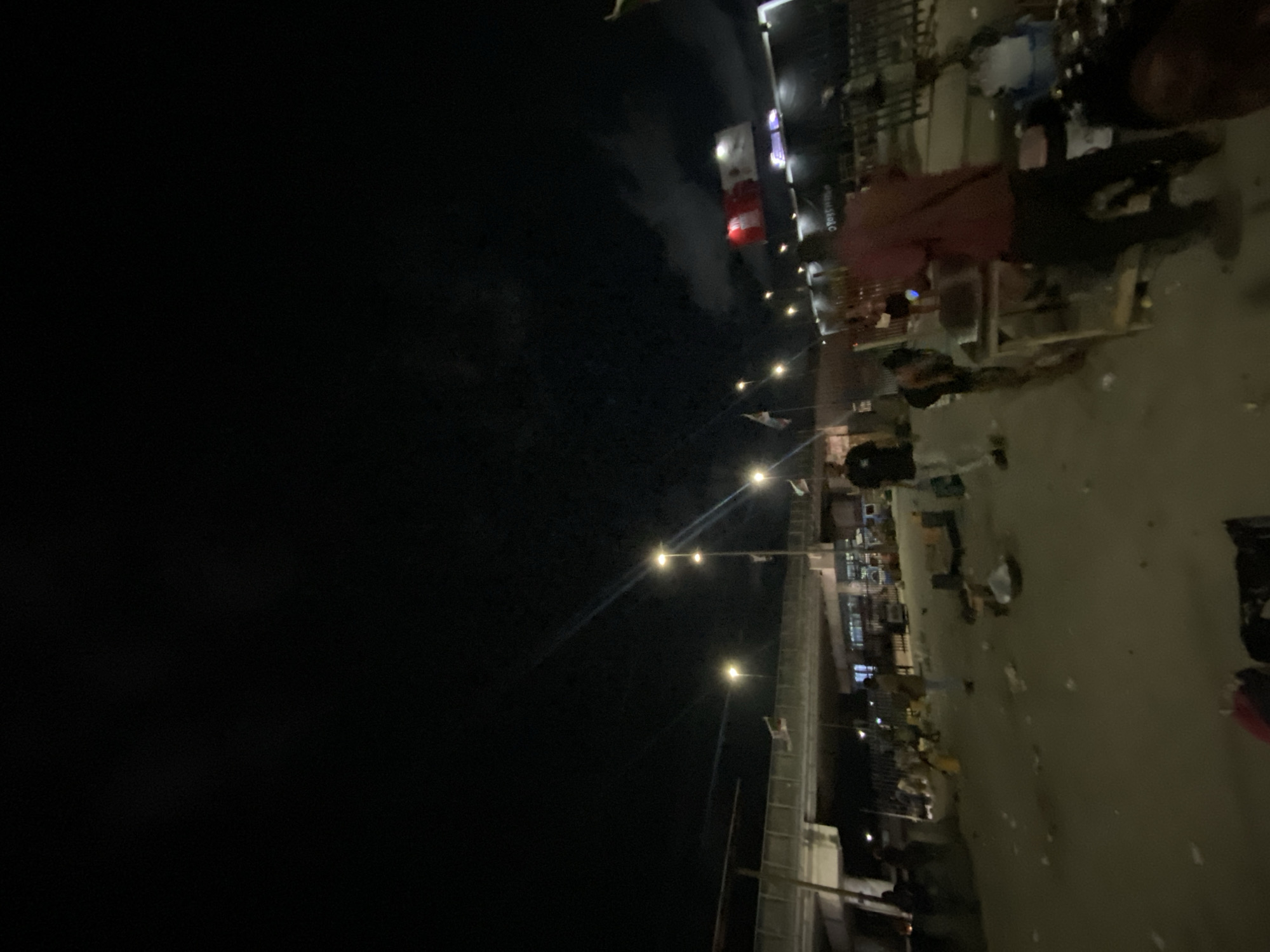 At night, the scene depicts a street in Lekki, Nigeria, illuminated by streetlights. People and objects are visible on the street, suggesting activity. The background is dark with possible structures in the distance.