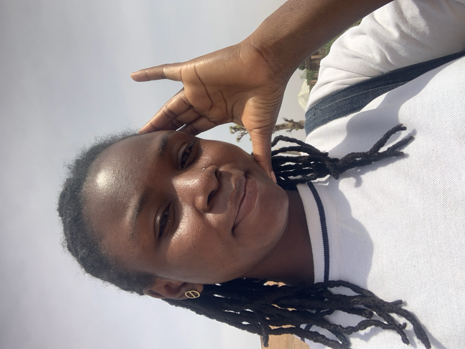 A medium close-up photograph captures a young Black female outdoors, in what is identified as the city of Tumfure, Nigeria