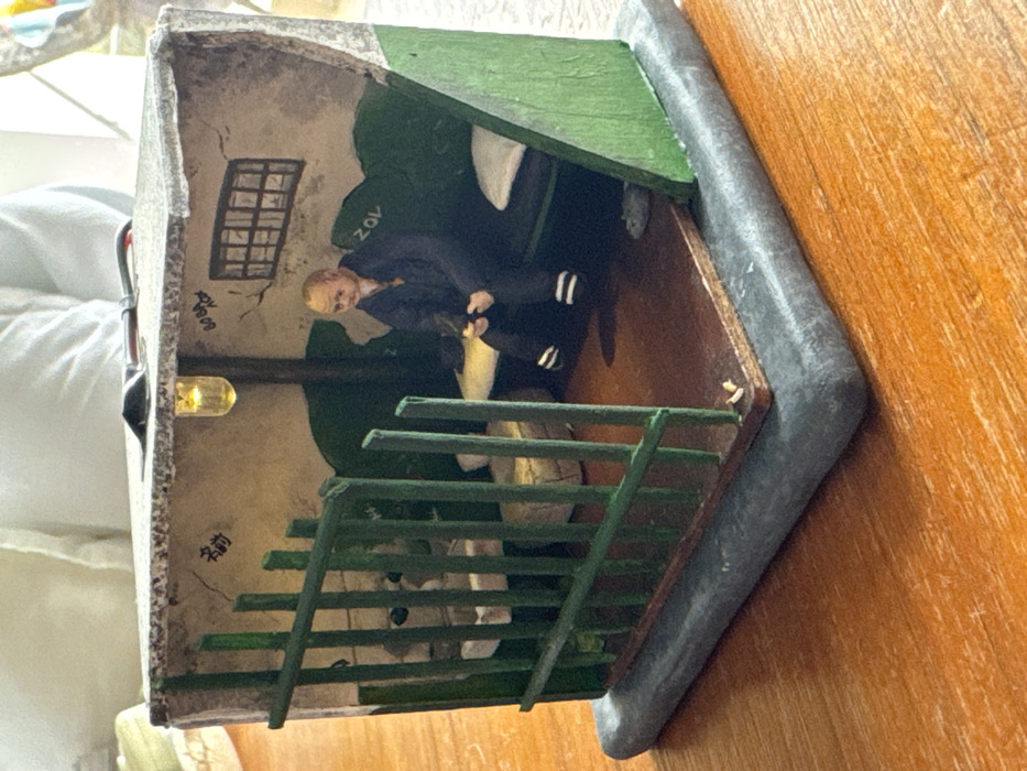 This image depicts a miniature diorama of a confined interior space, a cell, located in Boreti, Montenegro