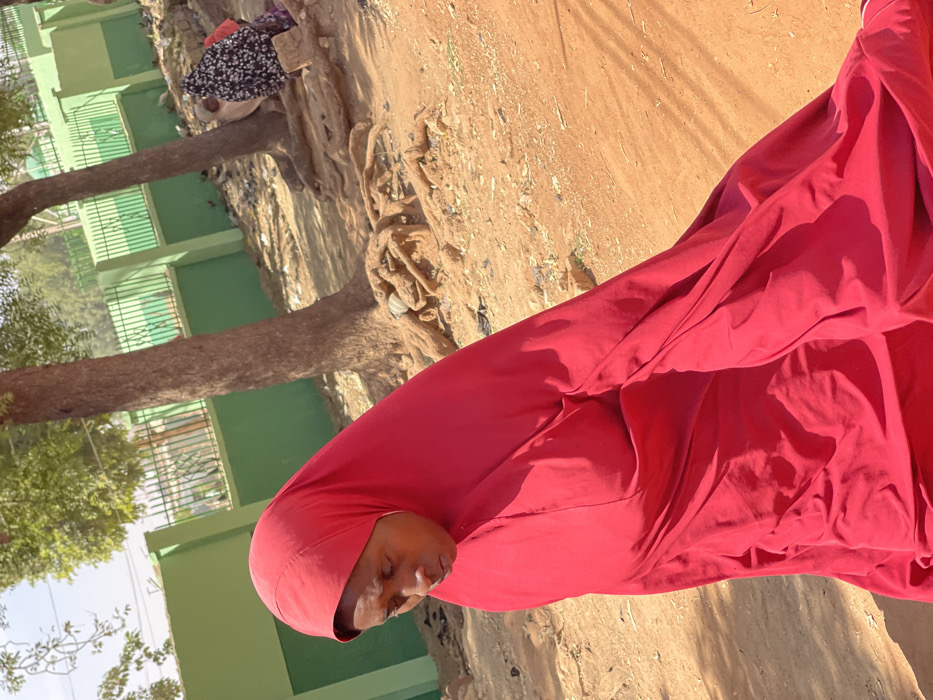 - "An outdoor scene in Muchiya, Nigeria depicts a woman in a red full-body garment prominently in the foreground, facing downwards and slightly to the left with her eyes closed" by FM-D7KQv1, licensed under CC BY 4.0