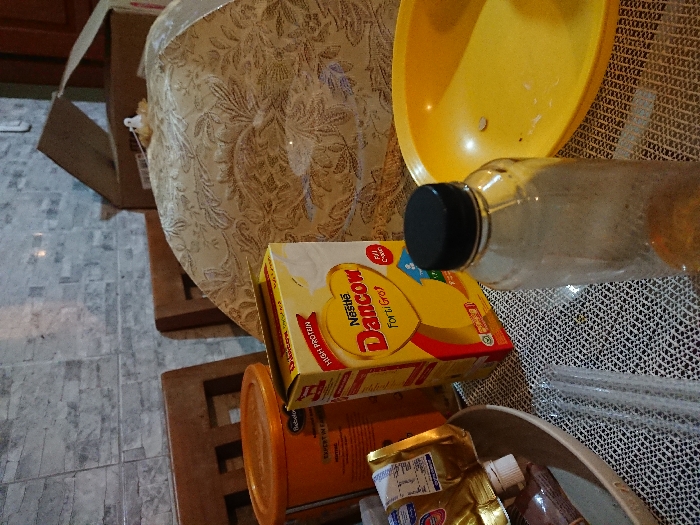 - "The image depicts an indoor scene in Pacet, Indonesia, featuring a collection of household and food-related items arranged on a dark-colored, patterned mat covering a flat surface" by FM-qDWqL2, licensed under CC BY 4.0
