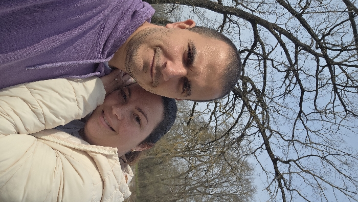 This image features two adults, a male and a female, in a close-up outdoor portrait, located in the city of Unknown, Unknown