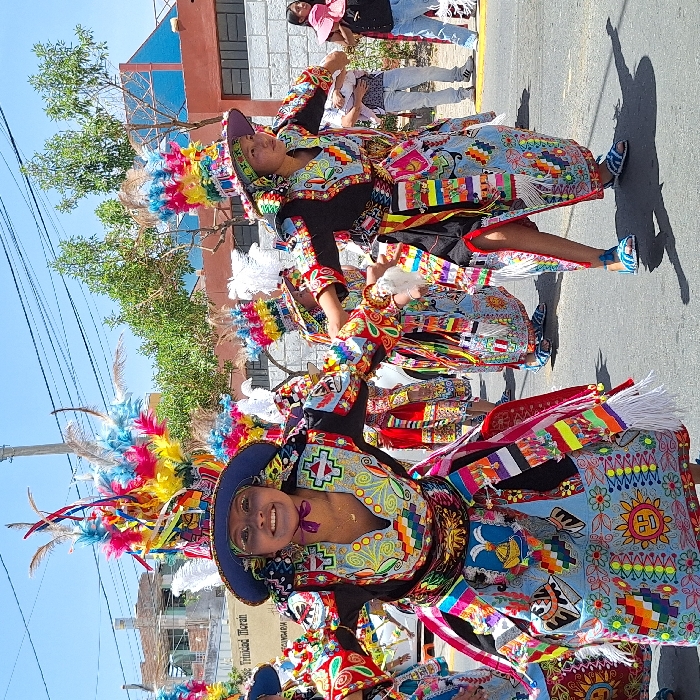 - "A vibrant street parade features performers adorned in colorful, traditional Andean attire" by FM-b0Aw43, licensed under CC BY 4.0