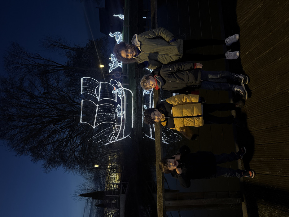 - "Four individuals, three males and one female, identified as children approximately aged 5-12, are positioned on a wooden plank surface, likely a bridge or boardwalk, during twilight or night in Marcq-en-Barœul, France" by FM-OZmdD3, licensed under CC BY 4.0