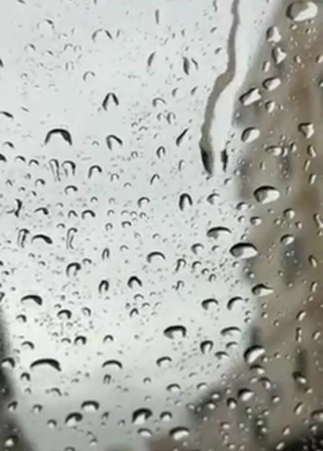 view through a raindrop-covered windshield