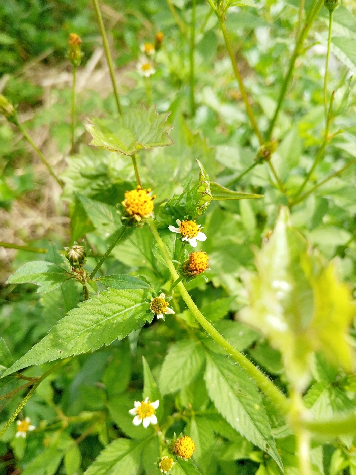 A close-up captures a vibrant green field filled with diverse plants and flowers