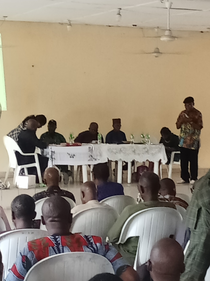 An indoor gathering is depicted in what appears to be a hall or meeting room in Port Harcourt, Rivers, Nigeria