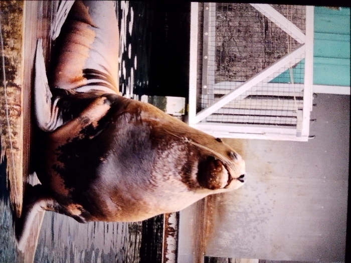 - "A sea lion with dark, wet, mottled fur is prominently featured, positioned vertically with its head facing the upper-right quadrant of the frame" by FM-mu3Bo2, licensed under CC BY 4.0