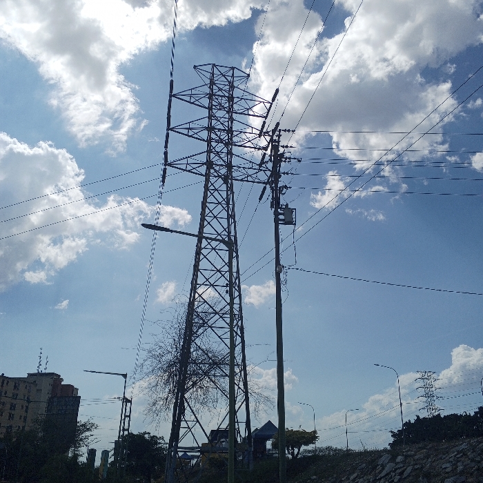 - "An electrical transmission tower dominates the frame under a sky with scattered clouds" by FM-Ov7T13, licensed under CC BY 4.0