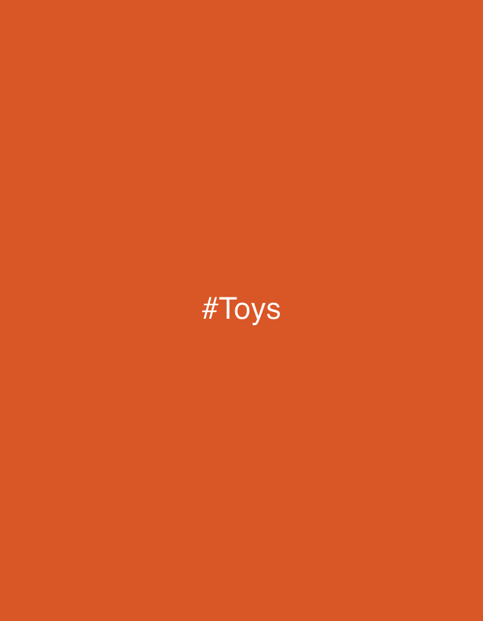 Within the city of Canet de Mar, Spain, the image depicts a solid orange field. Centered on this field is the white text '#Toys'. No individuals, additional subjects, objects, actions, interactions, or specific environmental characteristics beyond the uniform orange color are present.