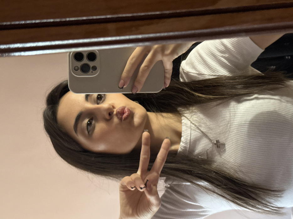 - "A young woman with long, dark hair is depicted taking a mirror selfie indoors" by FM-KrZyv1, licensed under CC BY 4.0