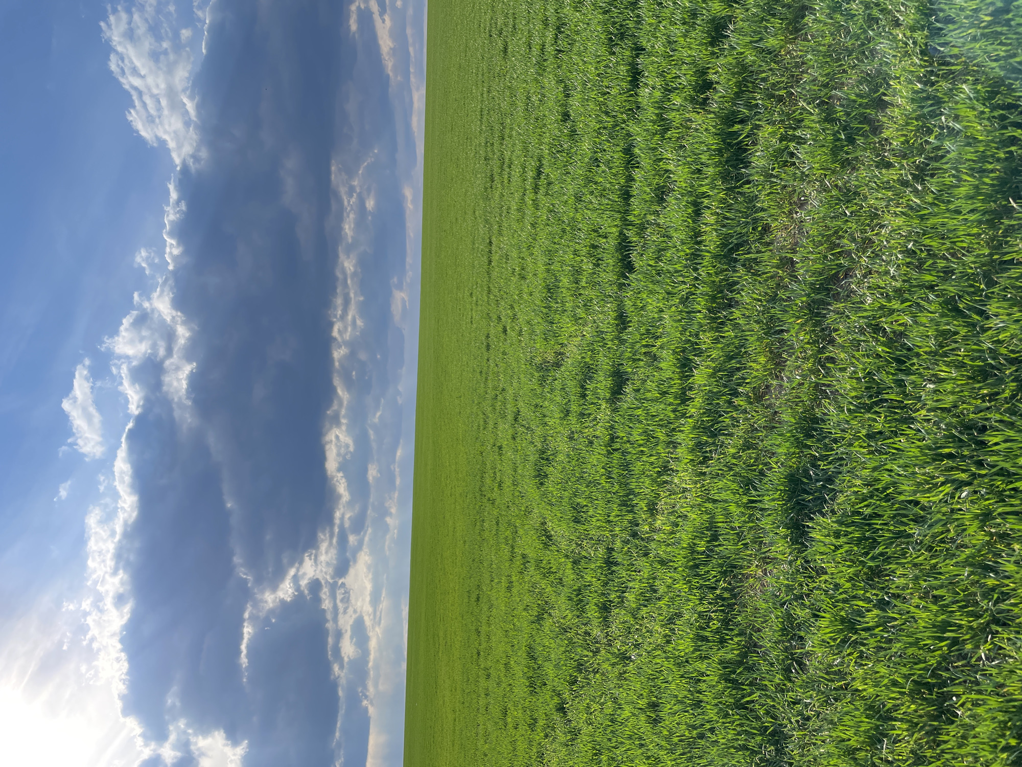 - "A wide-angle photograph captures an expansive agricultural field of young, vibrant green crops, likely winter wheat or similar, extending from the immediate foreground to a flat horizon line" by FM-CCJtk1, licensed under CC BY 4.0