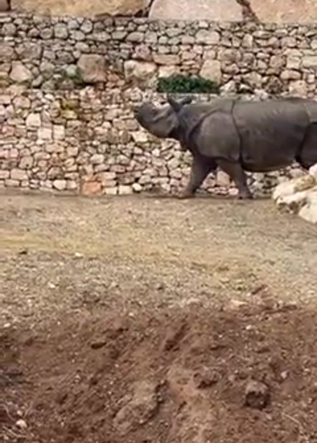 - "rhinoceros walking from right to left in an enclosure" by FM-PzA8E2, licensed under CC BY 4.0