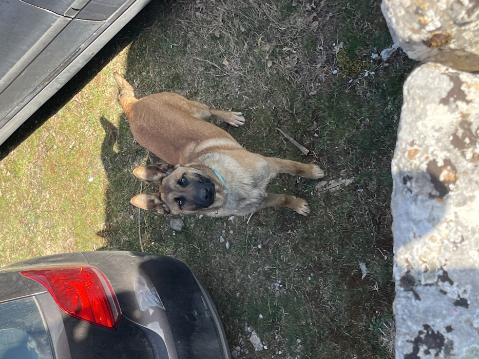 - "An outdoor scene in Žanjev Do, Montenegro, depicts a fawn-colored dog, likely a Malinois type, standing on patchy grass and exposed soil" by FM-zjOod2, licensed under CC BY 4.0