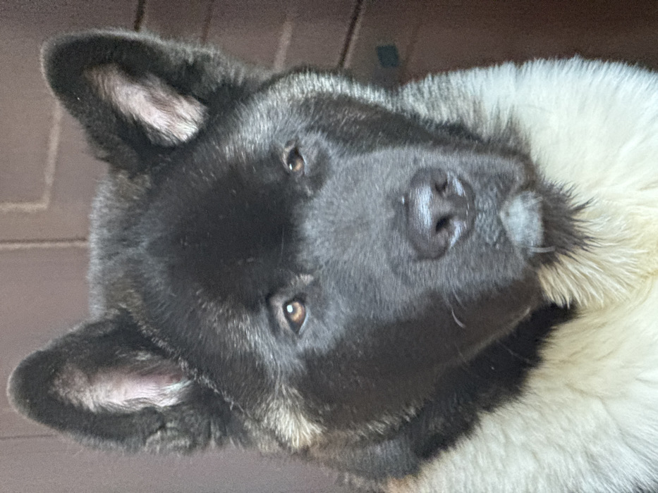 - "The image presents a close-up, head-and-upper-chest view of a dog, consistent with an American Akita breed" by FM-19Apr2, licensed under CC BY 4.0
