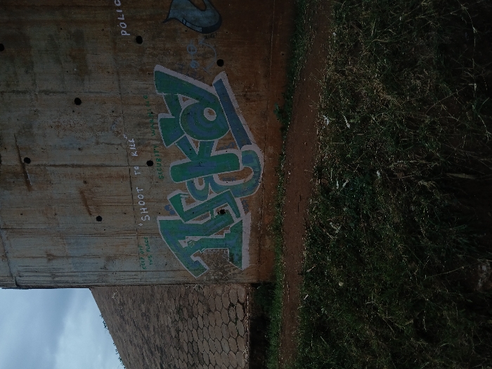 - "The image depicts a static exterior scene in Witeithie ward, Kenya, focusing on a weathered concrete wall or pillar, likely part of a bridge or underpass structure, under an overcast sky" by FM-oswMF3, licensed under CC BY 4.0