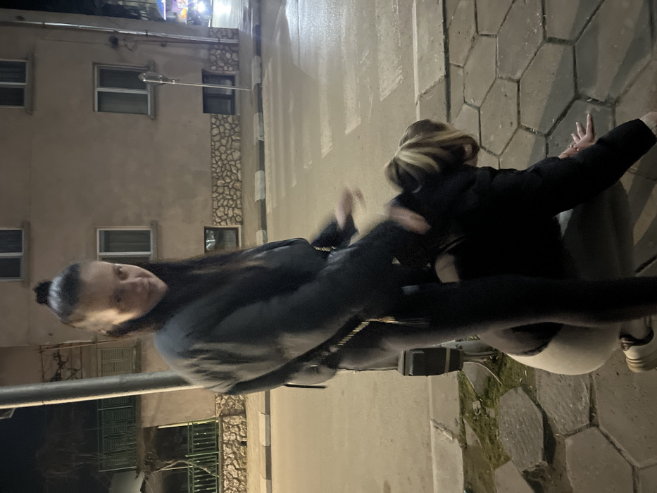 - "At night in Cherven Bryag, Bulgaria, two females are engaged in a physical interaction on a sidewalk adjacent to a street" by FM-l8nsv2, licensed under CC BY 4.0