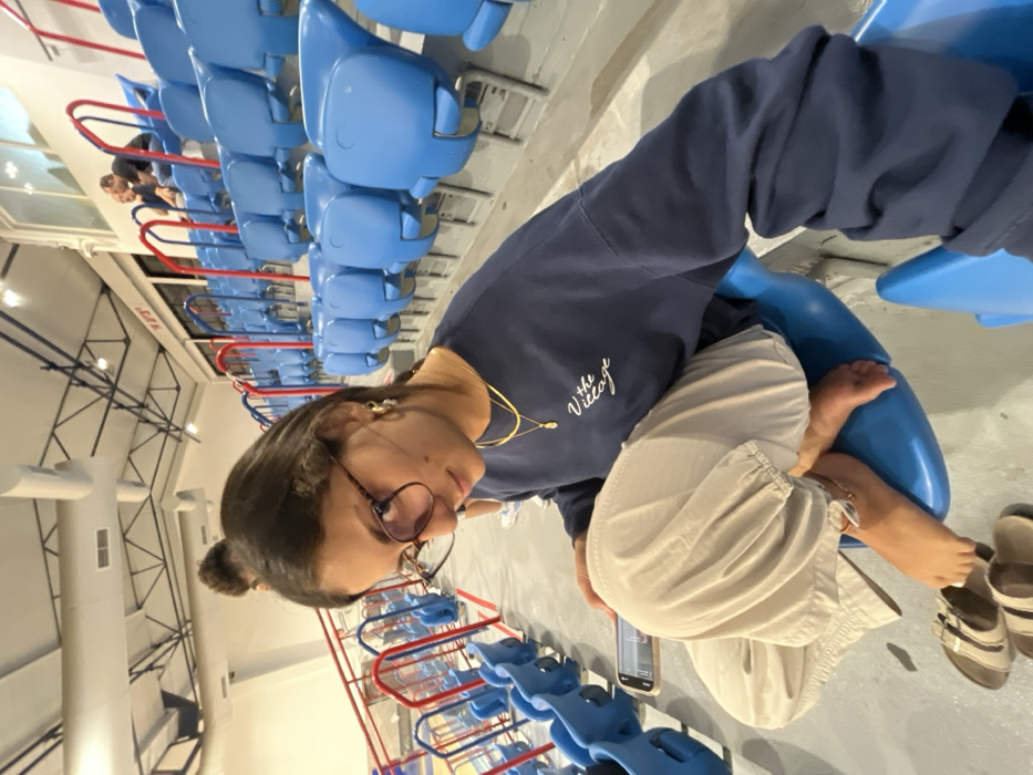 - "An indoor scene within the Hashalom Sports Center in Givatayim, Israel, shows a young woman seated in the spectator stands" by FM-rUuBK2, licensed under CC BY 4.0