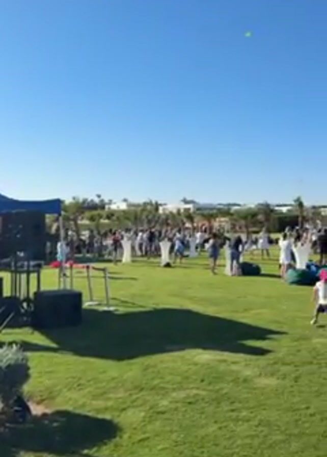 n outdoor event on a grassy field under a bright blue sky
